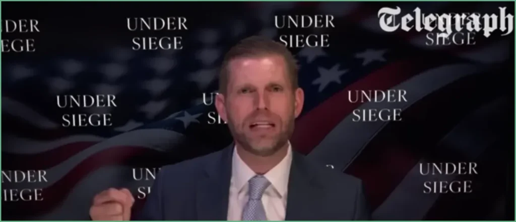 On the podcast Tim Stanley asked, “[S]ome of the siege that you faced — and I understand why it was very personal and distressing — can you accept that some of it was just people legitimately disagreeing with your father’s policies and using every lever available, as people generally do in politics, in order to push back?” That question prompted a sharp, immediate rebuttal from Eric Trump, who made clear he saw a line between policy disputes and deliberate attempts to destroy a family. His response was short and emphatic before he walked the interviewer through examples he considers beyond normal political play.